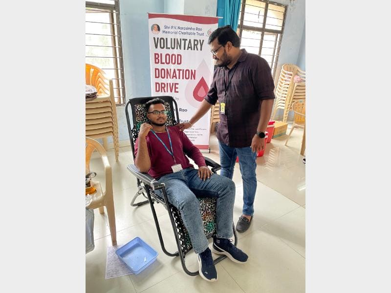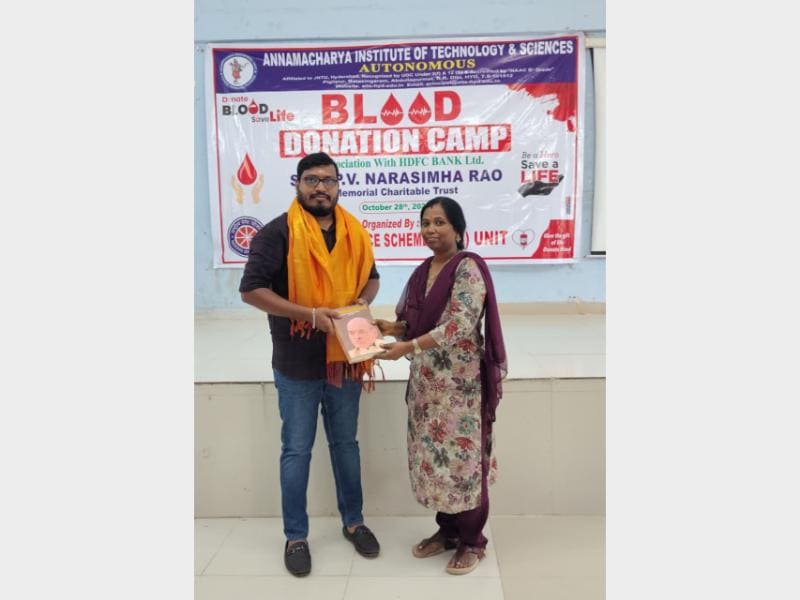 A Blood Donation Camp was successfully organized today in our college, in association with HDFC Bank Ltd. and Shri P. V. Narsimha Rao Memorial Charitable Trust, and organized by the NSS Unit.