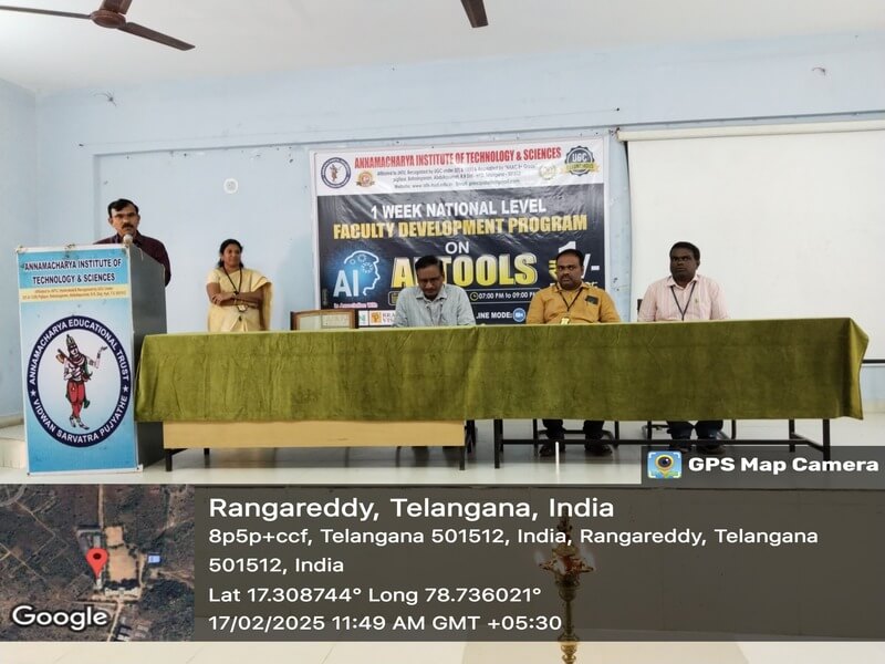 Annamacharya Institute of Technology and Sciences, Hyderabad hosting online One week National Level FDP program Inaugural ceremony on "AI TOOLS" scheduled from 17th to 21st February,2025 in association with AICTE,Brainovision Solutions,AIEFR,NEAT and 65 Faculty members Registered from various departments for this FDP Program.