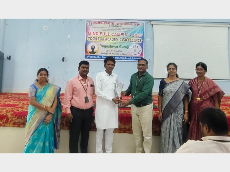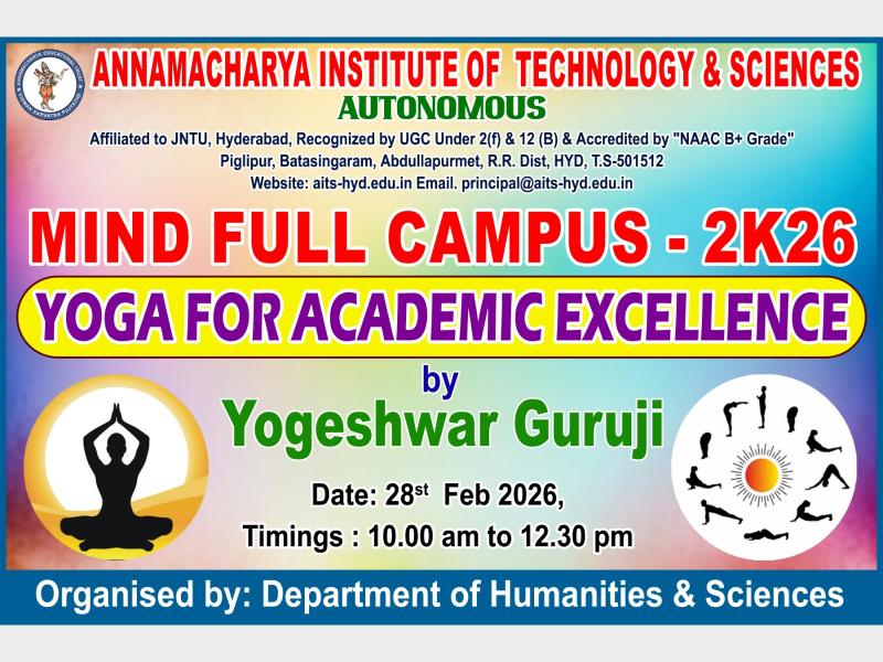 The Department of Humanities & Sciences organized "Yoga for Academic Excellence" under Mind Full Campus-2K26 by Shri Yogeshwar Guruji garu on 28.02.2026. B.Tech 1st year students and staff members actively participated in the program.